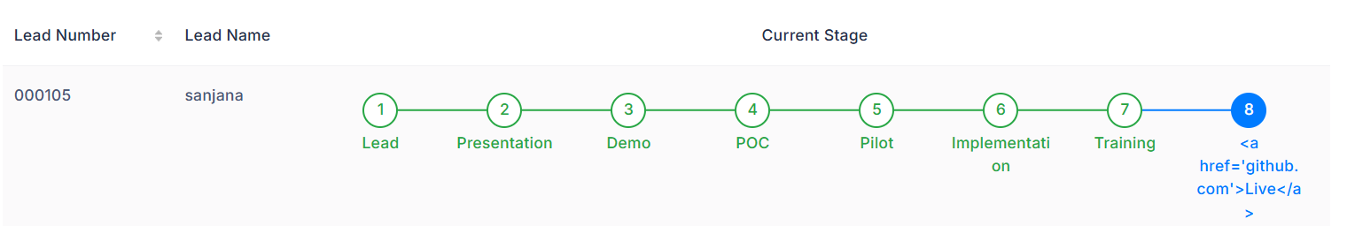 I want to add a hyperlink to each process in this Bootstrap Steps Display Plugin but there is no such options given. As you can see i tried to add a <a> tag inside the label field but it doesn't work either. Is There any other way to do this?