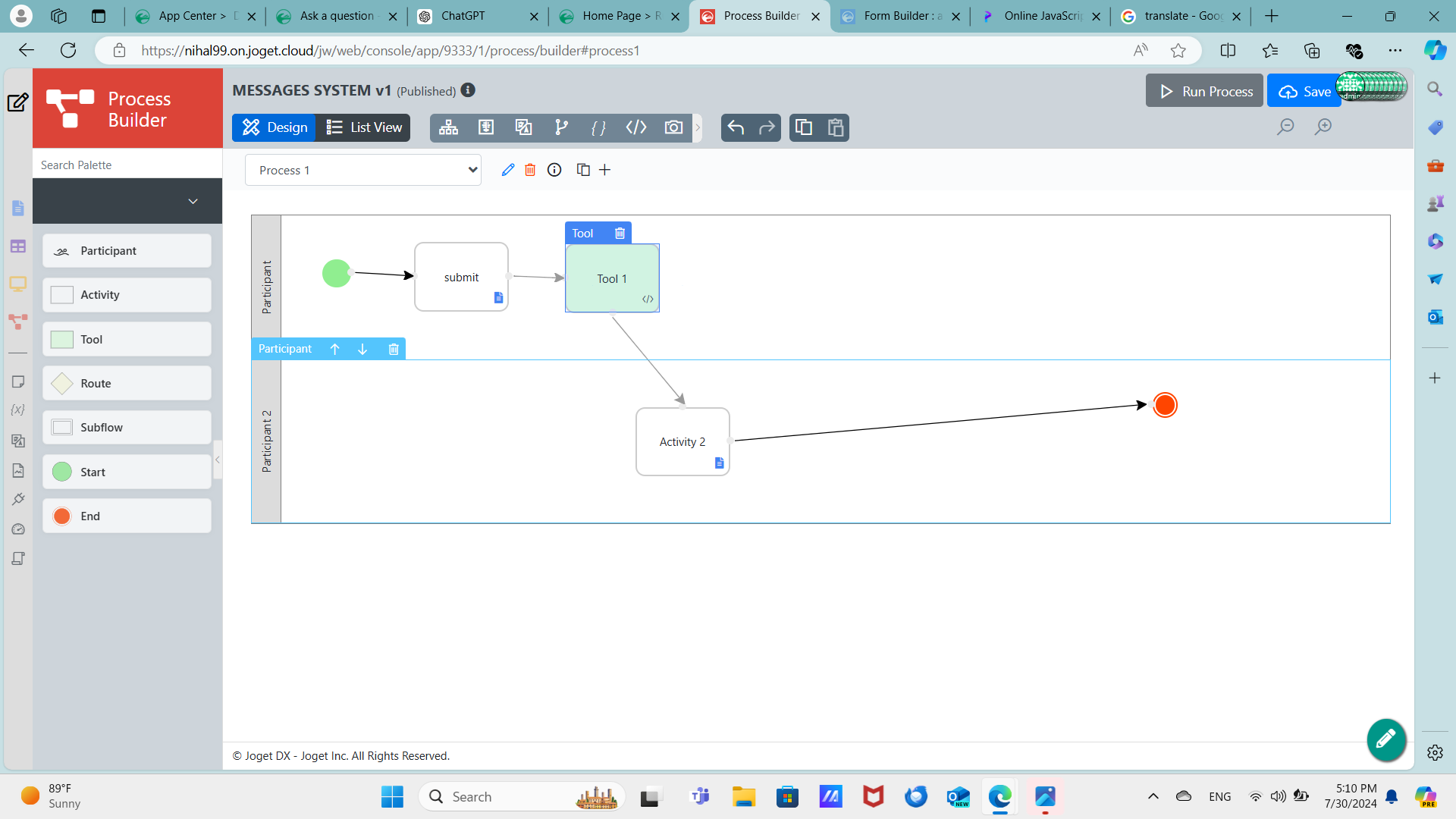 please delete it first activity (submit), and you direct the arrow to tool 1.