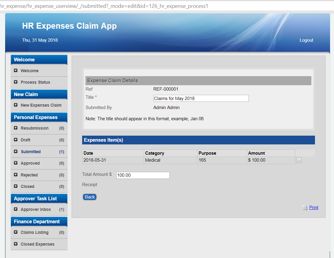 I downloaded the HR Expenses Claim app and configured the process status like in the KB article and I get a blank. is this a bug?