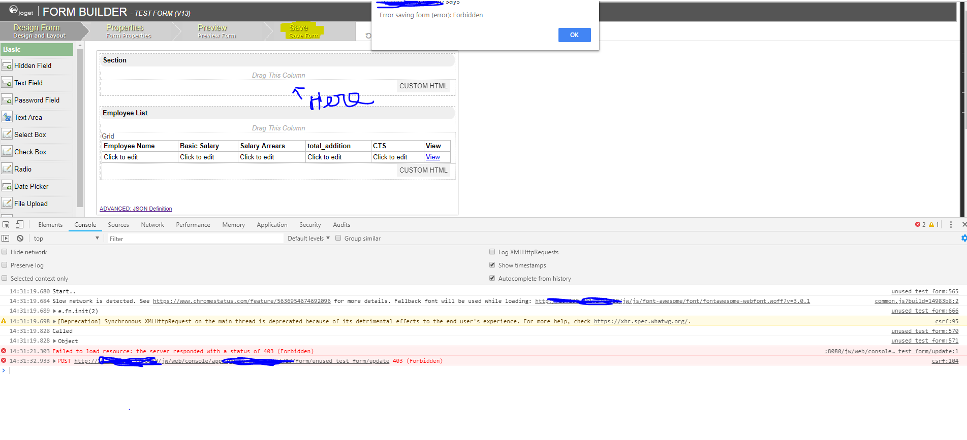 While saving Failed to load resource: the server responded with a status of 403 (Forbidden)