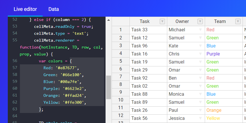 I'm trying to create a custom renderer like the color coded fonts from https://handsontable.com/features