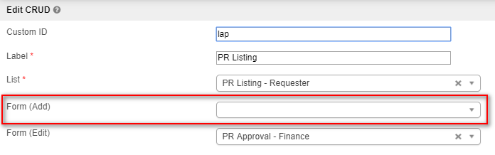 You can edit the Userview "PR Listing" menu properties and remove the "Form (Add)" selection to remove the "New" button from displaying in your app. Example screenshow below"